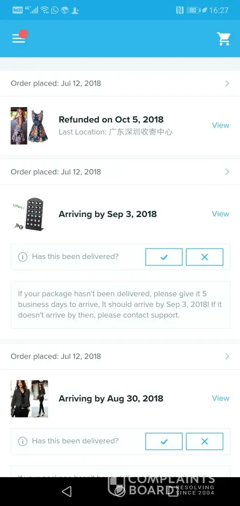 I ordered a few items in July and August and never received the items till today. I was unaware that you don't refund after a certain time. I did not request a refund as I wanted the items and still do. I am very upset as to the outcome and I do not eish for a wish credit but I want my full cash if the items cannot be sent. Why was the items never received when it was dispatched in June /July. Please urgently assist with feedback to [protected]@gmail.com.