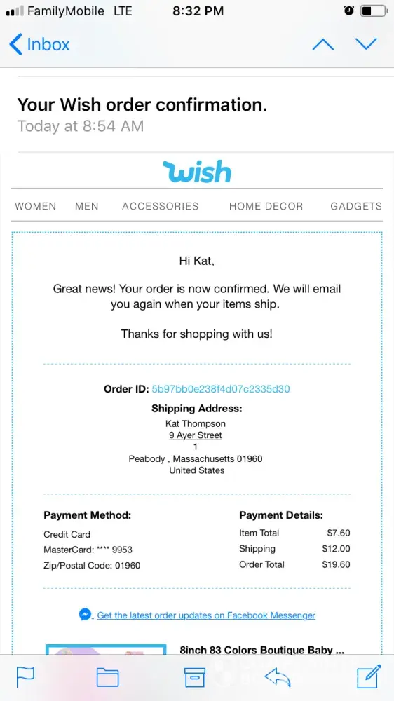 Been waiting a year and a half for a package listed as still in transit. Every time I email support I get a canned response telling me to allow proper time for my package to be delivered. I think I've waited long enough. No? I found that wish.com's support will keep you waiting until it's too late to be able to do a chargeback on your cc. Stole my money & no product.