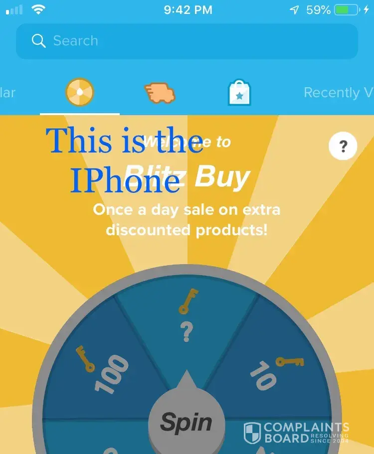 If you have the app on an android device, (Smartphone in our case) you are have the ability to spin Blitz buy wheel daily, try for daily giveaways, a tap to see what's available for speedy delivery, a selected Brands tab, as well as a Stores for you tab. No issues with android device. Now I have an IPhone. And on the wish app for iPhones you are not given the stores for you tab, and absolutely no option ANYWHERE to participate in a daily giveaway. Why am I excluded from having an equally chance at the daily giveaways simply because I have an IPhone?