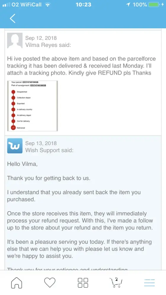 I paid for 3 electric bikes (£ 1300 Sterling) of which I received none ? Wish keep on sending the same request over and over again repeating request a Refund through the App but to no avail ! I went to Royal Mail Uk who informed me that the tracking numbers given to me were against items delivered to a different address in a different country (England ) ? I have sent Proof that Royal Mail did not deliver to me but Wish support must be the most unreachable customer support service I have ever dealt with ! I have sent nearly 100 requests now and require help ?
