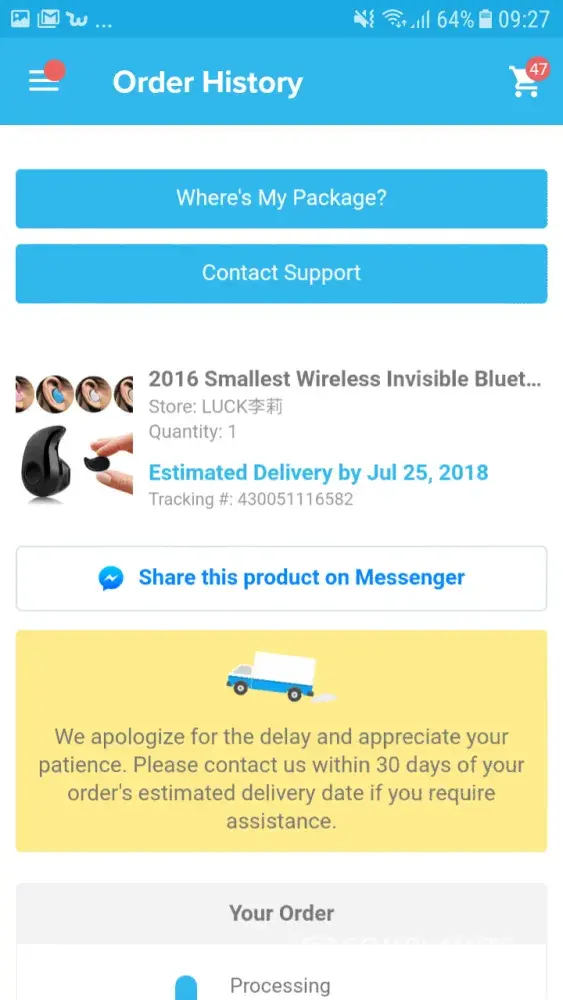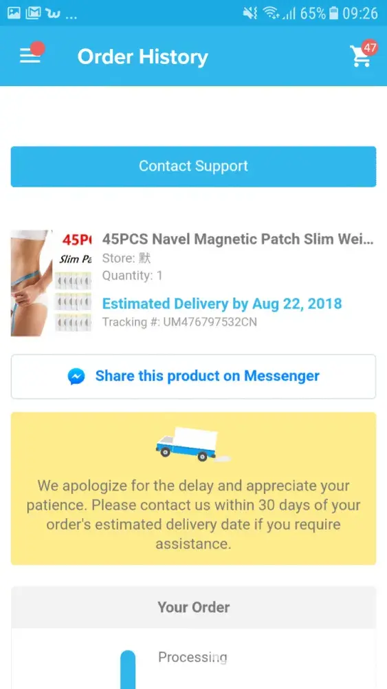 I hav order a clearing mop wit is not deliver to me till now... and aft 3 sept der is no update on the app about my parcel ... der is no C.O.D on app so I paid money online...one more order has place on my behalf... and decuted from my card by there own... wit out my permission... so I cancel ...still der is no refund of my money... from der wish app.
