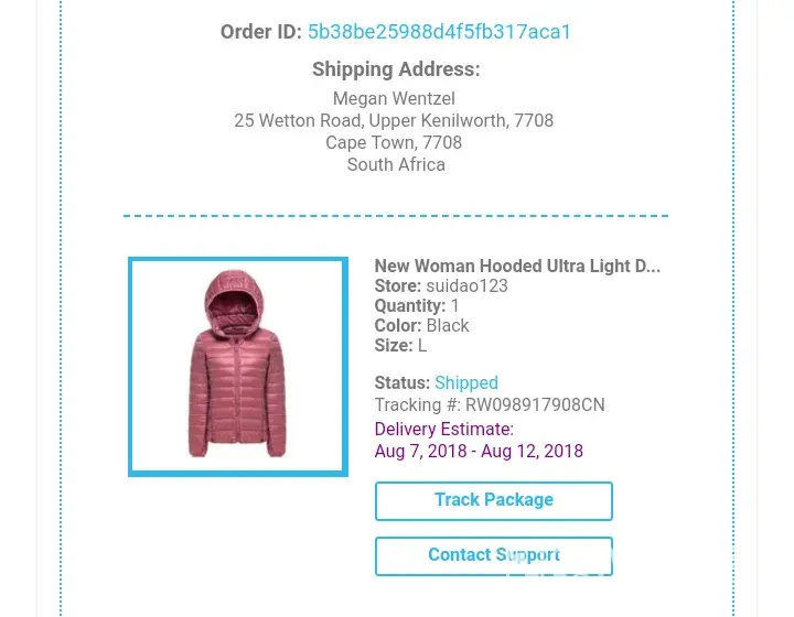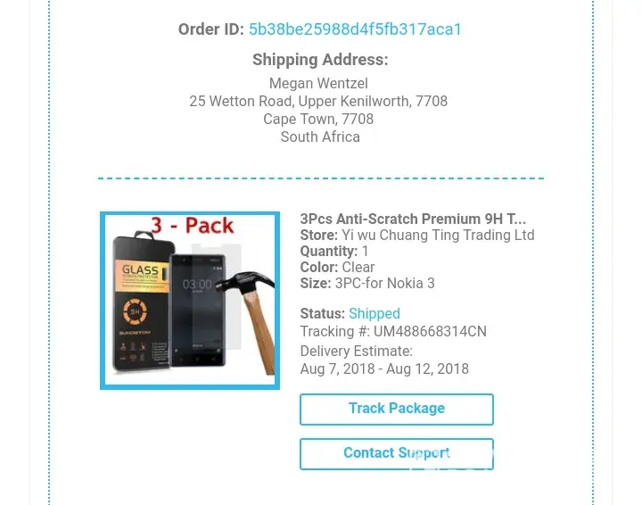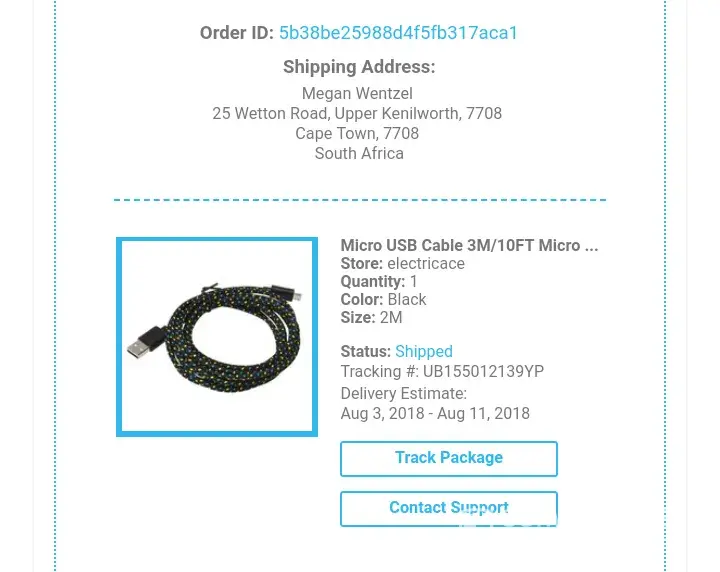 I ordered this for someones birthday the beginning of June and it said it will be in South Africa on the 31st of July. The date then moved to the 6th of August and I'm still waiting. I contacted support on the 14th of august and clicked I received the item by mistake and now it shows it delivered but it hasn't. My pants that I ordered got delivered on the 11th of July in claremont and wish made no effort to transport it to brackenfell where I live. This is ridiculous.