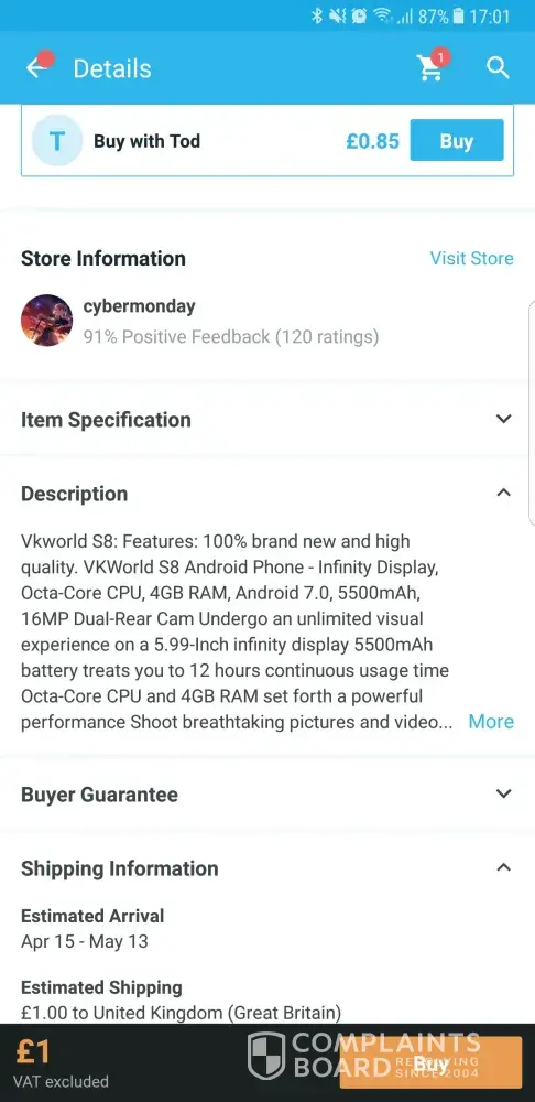 On the 30th March, I placed an order for the VK World S8 mobile phone for my 4yr old daughter, I thought that the seller (cybermonday) had a sale on as I was only costing us £2 with delivery, all the pictures and all the information regarding the item was for the mobile phone only and nothing else, I did send all if the pictures into wish so they could see for themselves what I actually purchased. Now instead of recieving the item that I first paid for all wish has done is given me a refund, now anyone knows that if a retailer is selling any specific item for a certain price thats the price they have to sell it for as thats what's advertised on the item, even if say the price was mistakenly put £200 cheaper to what the price should be, but that the sellers mistake and I dont see why myself and my young daughter should be made to suffer by not recieving the phone which I paid for in good faith. I contacted wish for there help and all theyve done is basically side with the seller which they are in the wring not me. I expected wish to tell the seller that they have to send out what was advertised to the buyer but they haven't. So I've had to come down this route now and put a complaint in as I'm not getting the correct outcome. I had to explain to my 4yr old daughter that she was now no longer getting the phone that she found and what she wanted, it broke my heart seeing how upset she got. So all I'm asking is for wish to speak to the seller and get them to honour their sale of the phone which I purchased. I'm going to add screen shots if the phone in question. The purchase was coming over from China as well. As you can see from the pictures I bought a mobile phone only nothing else, hope to get this issue resolved asap for my daughters sake