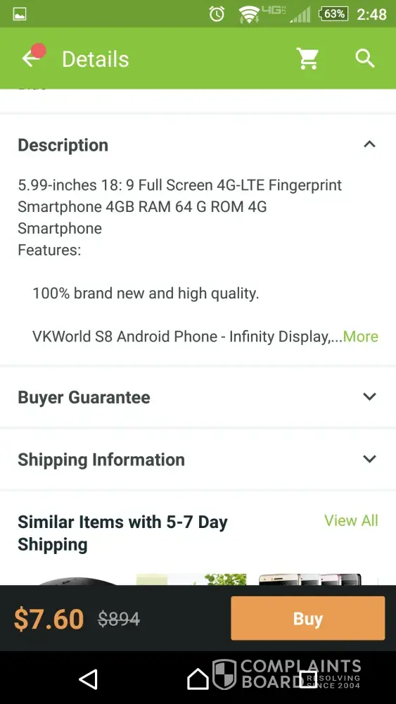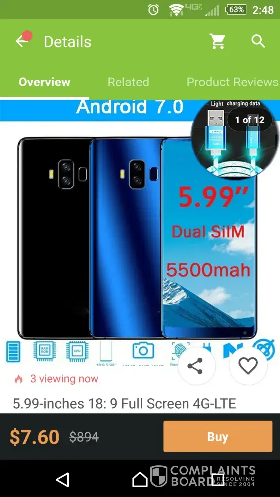 I was on the app for geek. Which is a wish.com site on March 22, 2018 and purchased the ad with the cell phone. I screen shot the item description I purchased and it was in English and stated it was a an actual cell phone. Then about a week or so went by and I went back to my app to see the status of my order and I noticed the ad for the item had changed, it was now on Spanish. The whole ad has been changed. I then preceded to contact customer support through the app to question why the ad changed and to verify the item was still a cell phone that was being sent to me. I got a response advising me it is now a cable for the cell phone. I provided the customer support rep with my screenshots and explained how the ad changed since I purchased it. They advised that I need to wait for the item to be delivered and sent them a photo of it. I then requested multiple times to be refunded or send me the item I actually ordered. I have not gotten any resolution to this issue as of yet. This is illegal! I will never order from Wish.com or any affiliated company ever again. I still am owed a refund or the item I actually ordered. I have attached the English ad which is the one ordered and also a image ad in Spanish which is what they changed it too after I purchased.