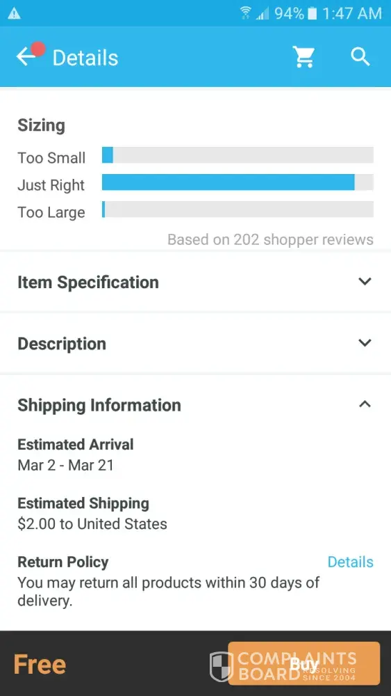 Another item I ordered in January said I'd receive it by Feb 25th after the 25th it said I must wait till March 6th before I can contact support about it. On March 7 I contacted them and they said please wait another 42 days for shipment. If they bothered to even look at it it shows the last action on the tracking was shipment info received on Jan 14th. They never even shipped it and still want me to wait. I'm done ever using wish and will boycott then.