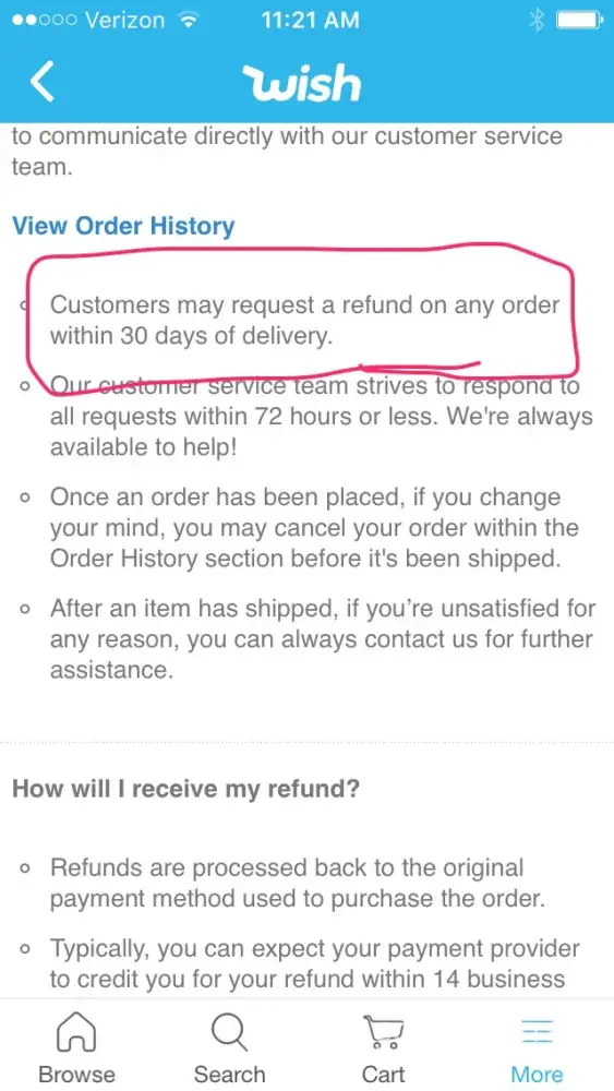I was really excited and really liked this app at first but using it further my experience with this company has been extremely bad. They have been extremely uncharitable and unaccomidaing to me. If wish had just refunded me like their return policy says it should, I would have been buying stuff from them months ago and I would probably still use this app. Instead I will probably delete this app because it is wayyyyyyyyy to sketchy ordering things from them. They say they have your back but they totally don't.