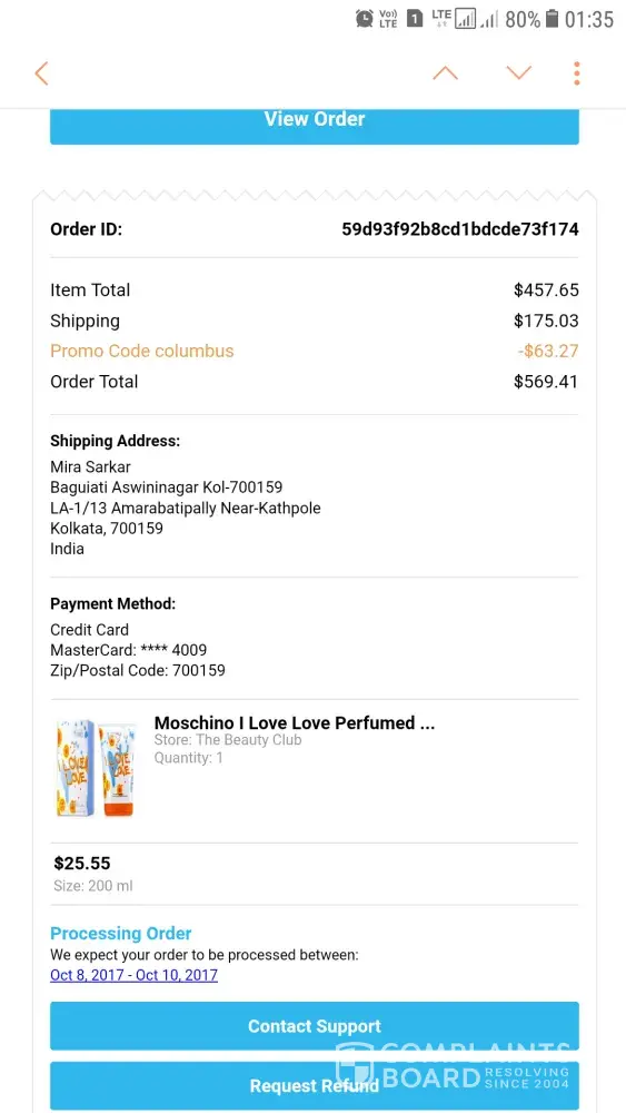 I have recently purchased some utility products from wish.com on 8th October 2017 n they said they will process it within 8to 10th October however it's not been processed yet and took out money from my credit card and they not even processing my orders. Al the amount has been deducted from my account what do I do in this case .