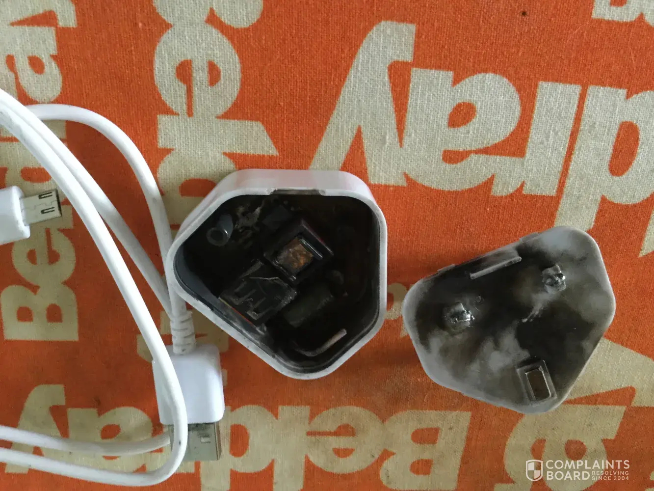 I got my parsel today which was a mobile phone for my granddaughter who 8years old when a set it up within 5mims it blew up and it burned my fingers also left me with no power in my house cost me £35 to get it reconnected what would have have happened if my grand child had plugged it in? Can you please advice me what to do [protected]@googlemail.com