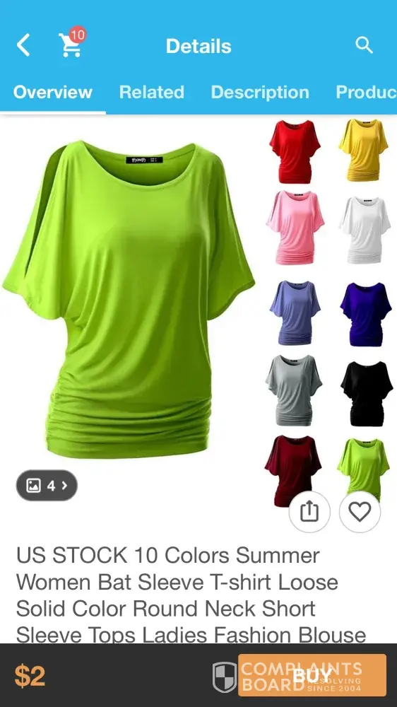 I ordered 4 bathing suits among thousands of dollars of other items from wish I've oy had a issue with this one order of 4 bathing suites it's says it's been deliverd and has not I'm home every day the mail man brings my items to me personally to my door theses items never arrived wish is giving me the run around and don't want to resend my order or give my money back ..BUT THEY WILL I WILL SEE TO IT