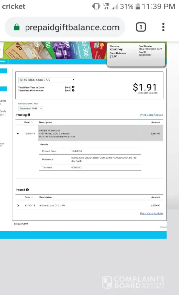I am complaing about the wish app / wish.com (suspected fraud)