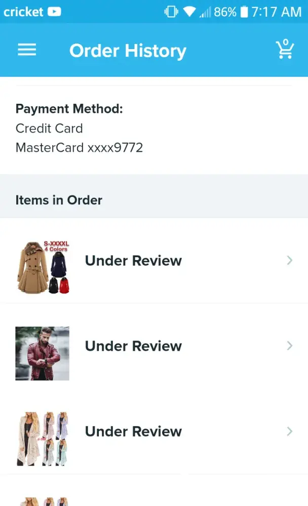 I just ordered about $160 worth of stuff through the app. The next day my order was cancelled due to suspected fraud. Was searching around to find out if that meant fraud on my part or the sellers'. I've ordered through Wish successfully twice before. Just bummed I won't be getting my stuff. I know how credit card returns can take some time, so as of today, my account has not reflected any refund.