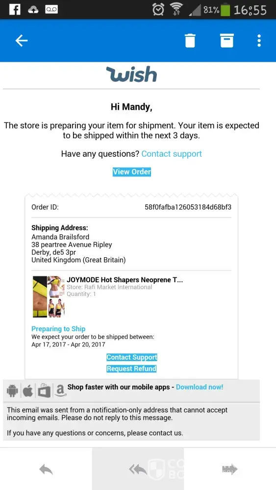 Wish.com has not sent my order?