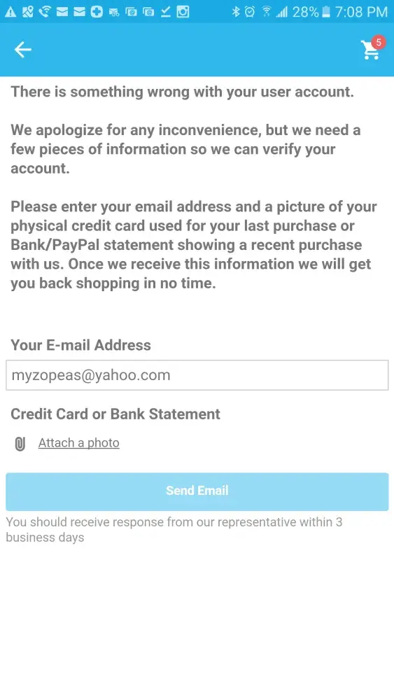Recently I decided to make my own account so I wouldn't trouble my aunt and having her pay for me every time. I didn't even make it to my first purchase. I checked out 2 items and as soon as I slid the pay now button, it says my account needs further verification and so I took a picture of my credit card and waited for the email.