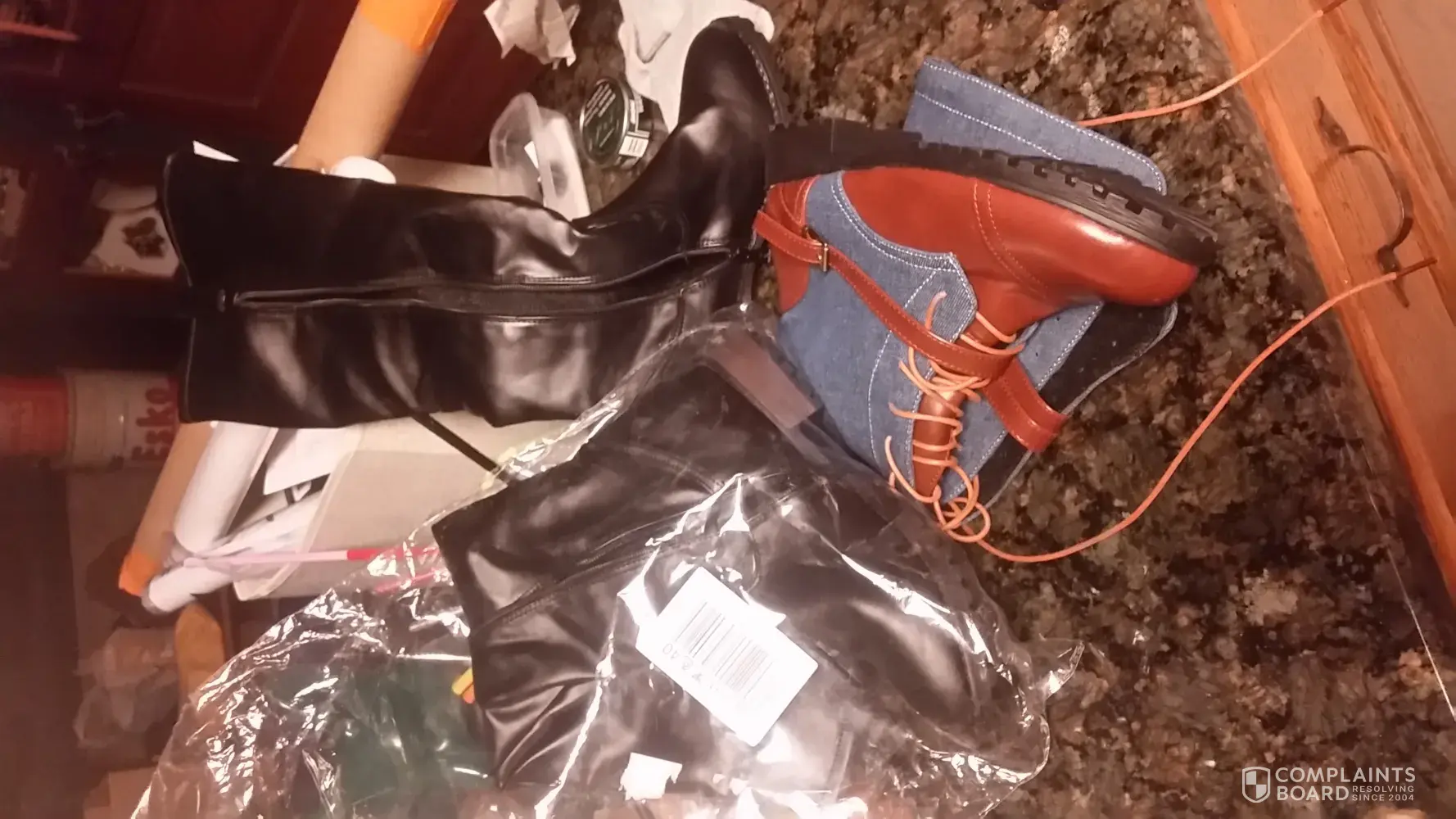 I wold like a refund on three pairs of boots. They are terrible quality and twould pair are not even the right item. Plus they do not fit. Everytime I go in a request a refund, I am not permitted to attach a photo, so my request will not go through. I am very frustrated, and I order alot from your compan5. Please help to resolve this issue . Item D97731BR40*1 and DR7731HS40*1 numbers are on the bag and ups tracking no LT 688367650CN on the other boots.
