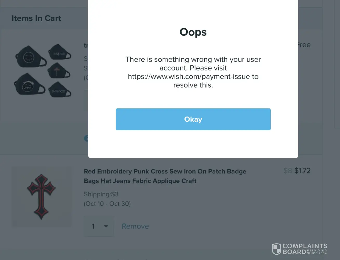 Before this, I received a message asking me to send my photo ID and photo of my debit card. I have sent it several times but did not receive any response. message appeared Lately, the abovementioned -"There is something wrong with your user account. Please visit https://www.wish.com/payment-issue to resolve this."