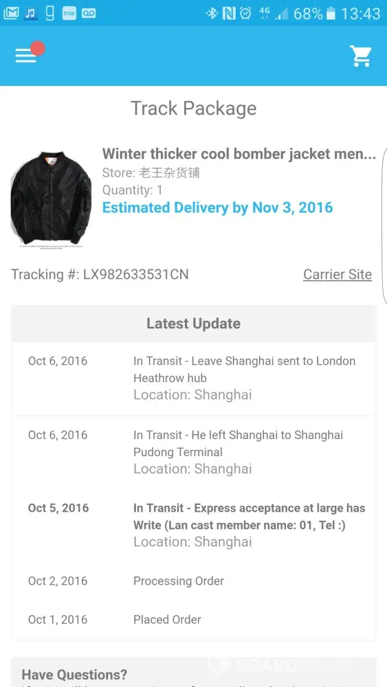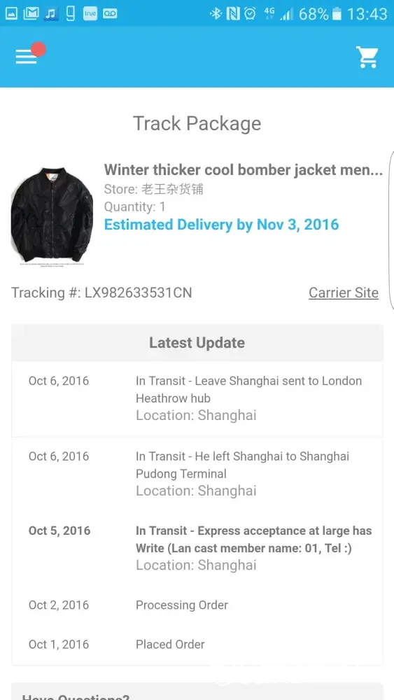 I placed two orders on 01/10/16 and as of yet have not received my order, today is 22/11/16 and the estimated delivery date was 03/11/16. I have tracked the order which shows that it is in transit to London since 06/10/16, yet still have not received my order and my account has been debited £66 on 03/10/16. Where is my order? This isn't acceptable. I'm highly disappointed!
