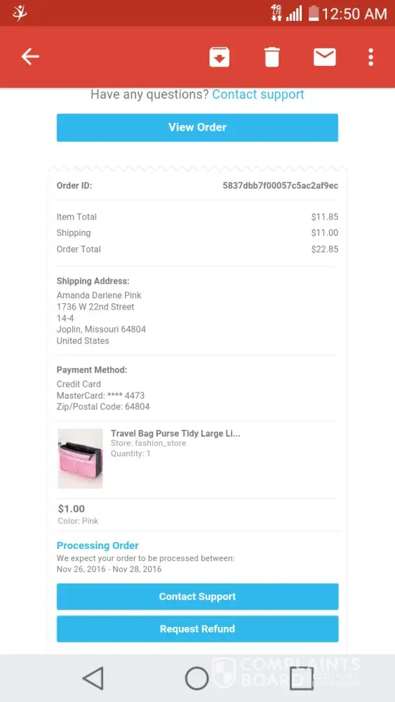 Made an order 11/22/16. Went to check back on it and nothing is there. Completely blank. No orders found! However the money has been withdrawn from my account for full amount! I can't make in inquiry because I don't have an order. I called and it refers you back to online. Sent a message via app and via email with nothing more than an automated response! First time ordering and I feel like I am being scammed! I just want a refund at this point.