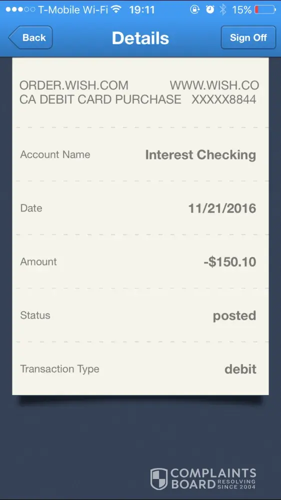 Wish.com posted as a withdrawl. No record/order history exist on my account!!