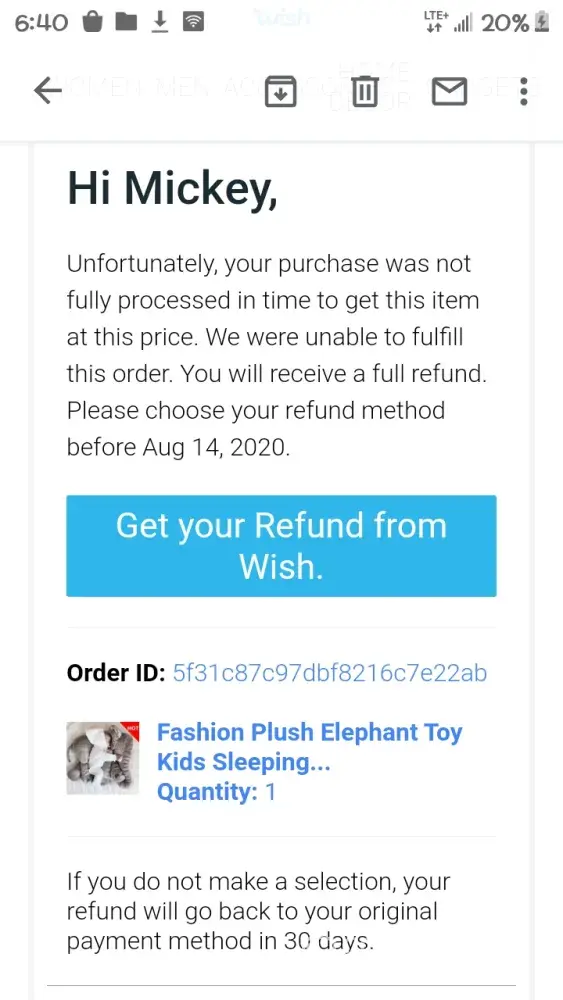 The items I ordered were all at a discount price. I also know that there are many complaints. I don't see how a company can do that, if they say that my order is complete and payment accepted, they can not turn around the next day and tell me I am getting a refund. Wish is supposed to be a company that has produced it's for sale under market prices. This is scandless.
