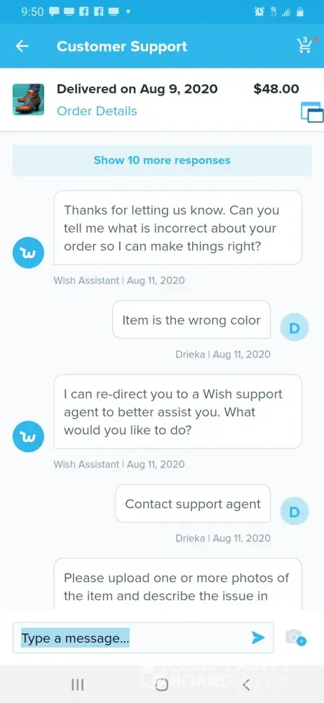 Return made. Refund not made. Card can only accept deposits from government because it's an unemployment card. Asked wish to provide card#deposit made to, as well as date and amount. Wish keeps referring me to page of no help. I just want this headache over. It's been going on for months. Wish just keeps stalling and repeating rehtorical nonsense. I just want my $34. I'll even accept wish cash.
