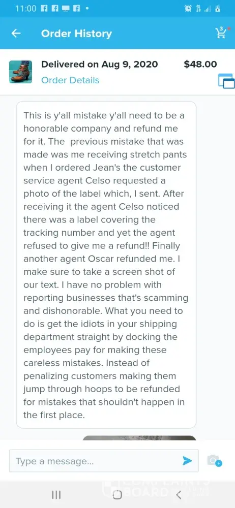 This is so bad for this company as I will tell every one on face book not to try this web site ever. I work very hard and cannot afford expansive clothes to work. I did like wish clothes, thought I can look stylish but hee let alone looking stylish, I don't even get clothes. Its unfair.