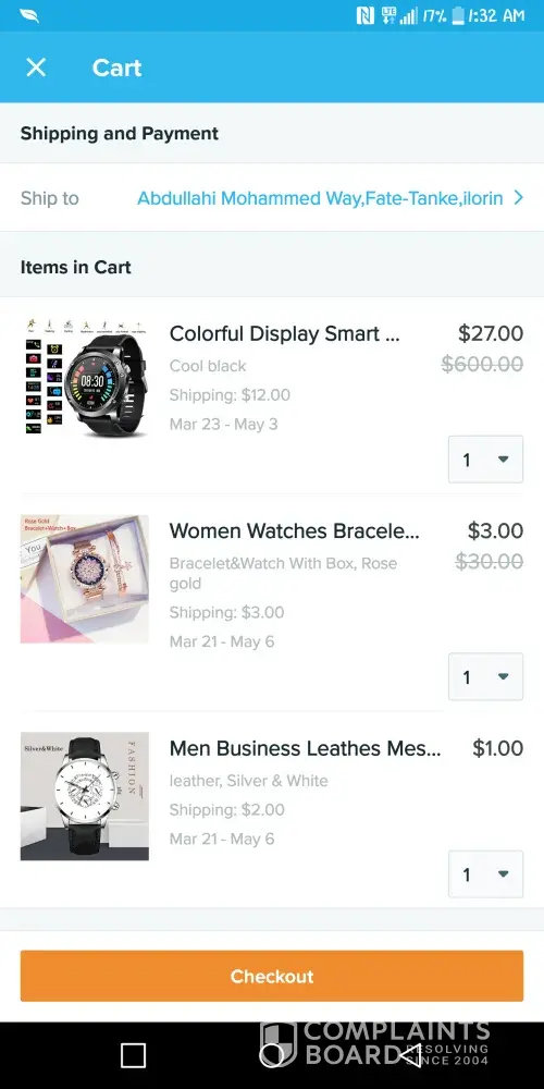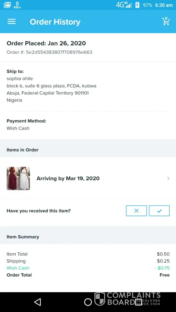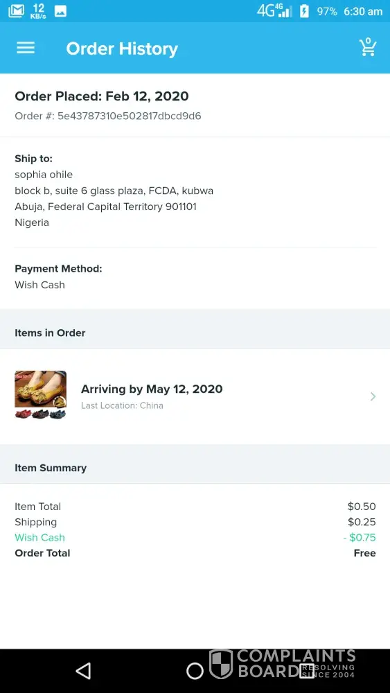I ordered two different type of insole of rupees 260 and rupees 70 for shipping I didn't get my product on time so I cancelled the order. Wish said they refund my product between 14 bussiness day, now its more than 18 days I didn't recieve my refund, and they also not answer me whem they will give my refund. I want to complain against wish shopping app