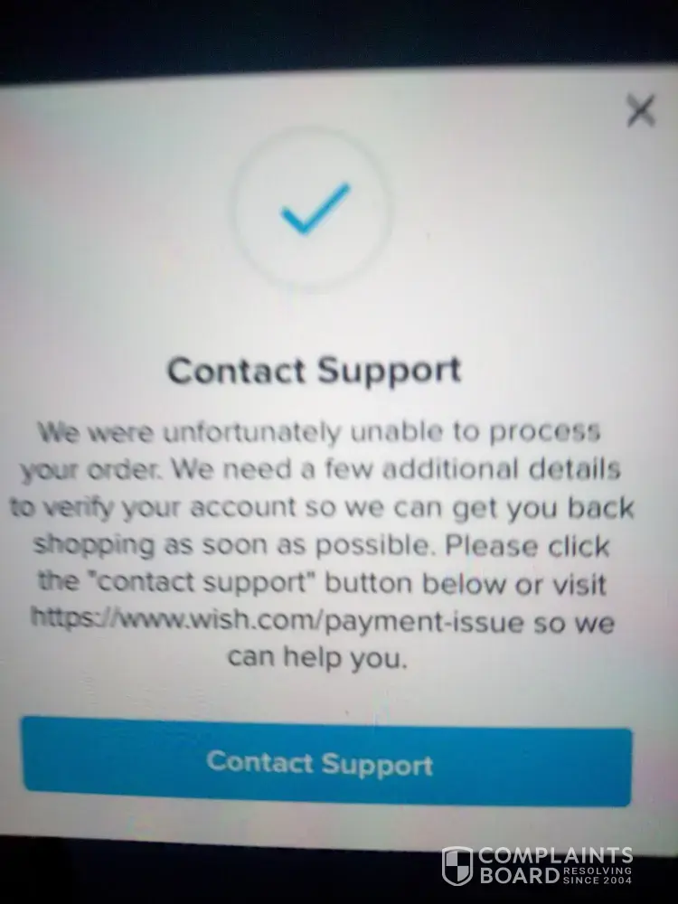 I placed several orders December 29th, I received the confirmation emails as well as a notification on my phone to say there were 3 payments taken from my card. Everything good, wrong! The next day I received a message there was a problem with my payment and my orders had been cancelled. I sent an email telling them I was very angry because the money had been taken for the items and I wanted it resolved! I received 3 messages from wish for each of the orders I had placed saying the funds had been refunded to me and I could place my orders again. I verified that the funds had indeed been refunded and reordered the items which were still available. When I tried to place the order I received a form on screen to enter new payment details which I did and tried to place an order with the message oops there is a problem with your user account and to go to wish.com /payment-issue. I am unable to purchase the items. They want a copy of my bank statement. Not happening. Now frozen my two cards registered to wish as they once took funds for an article and a couple of weeks later took it again. It wasn't much but it was the action. Can this be resolved!