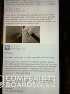 My husband purchased this item from Wish in November 2019. On Saturday 4th January he was walking back to his car when the strap broke and his watch hit the ground. Consequently the watch has a chip out of the glass now. We have had no success with customer service through the Wish app. Just been told that a refund cannot be made because the claim is not within the specific time lapse from date of purchase. We would like some kind of recognition that this item is totally unworthy to be a strap for such an expensive watch. For your information the purchase price for the watch was £449.00 and bought at John Lewis in August 2019.