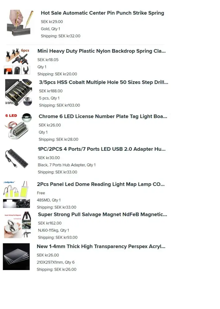 The item cost 26 SEK kr about 2.78 USD and the shipping cost was also 2.78 USD so total 5, 56 USD