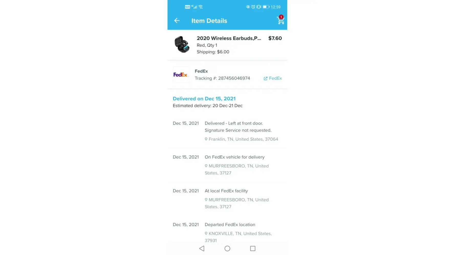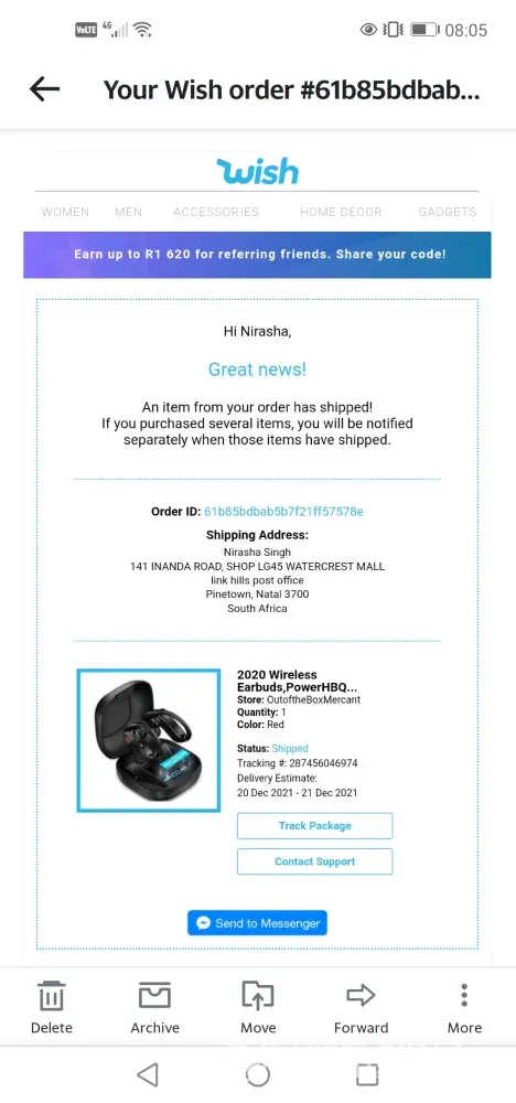 One of the item that is T-shirt got delivered on 25th January 2022, but Tab could not be delivered till date, however I contacted customer support to deliver at least the TAB via proper post /delivery method (Screen shot attached), but they send the same via Wishpost, I tried to contact local post office for delivery they refused and said we can't track as the delivery medium is ordinary.