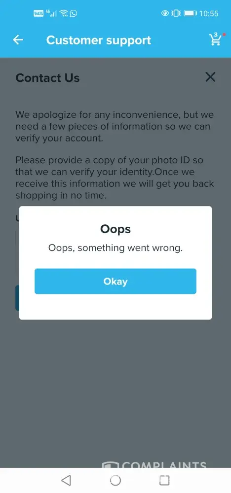 Wish blocked my service when I complained that they delivered my order to the incorrect country. They don't read, I've sent screen shot of my address and they insisting the order was delivered, yes it was delivered to the incorrect address. That person is enjoying something which I paid for, when I try to contact support if flags me with a account issue asking me to upload my ID, when I try to do that then there's an error which appears