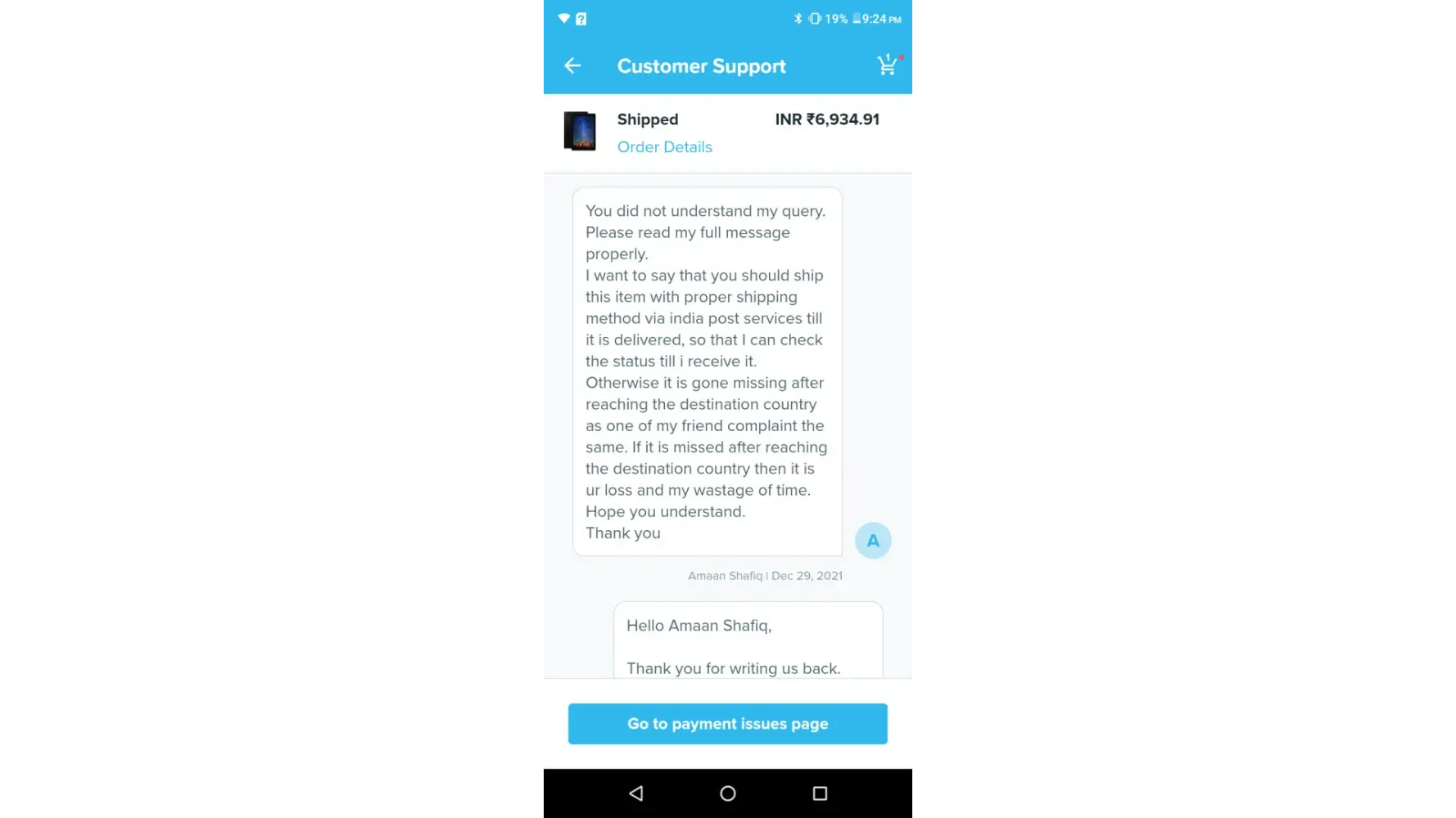 First I get the run-a-round from 11 different support agents then and I still don't have the order I paid for.