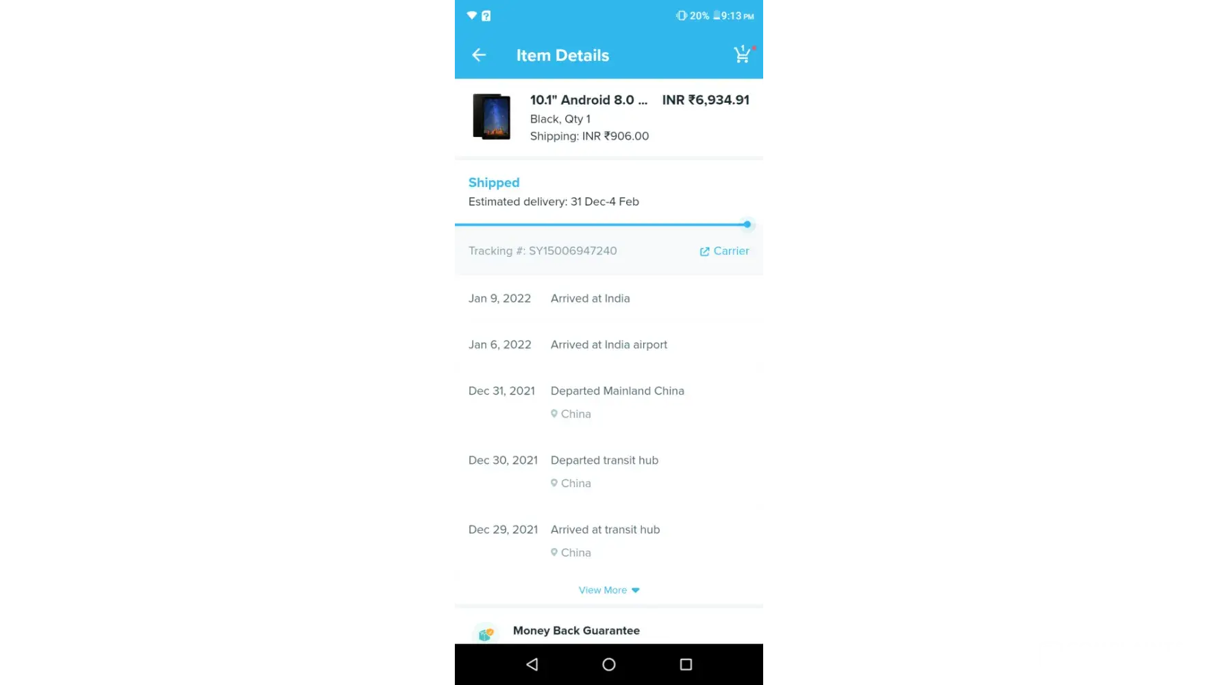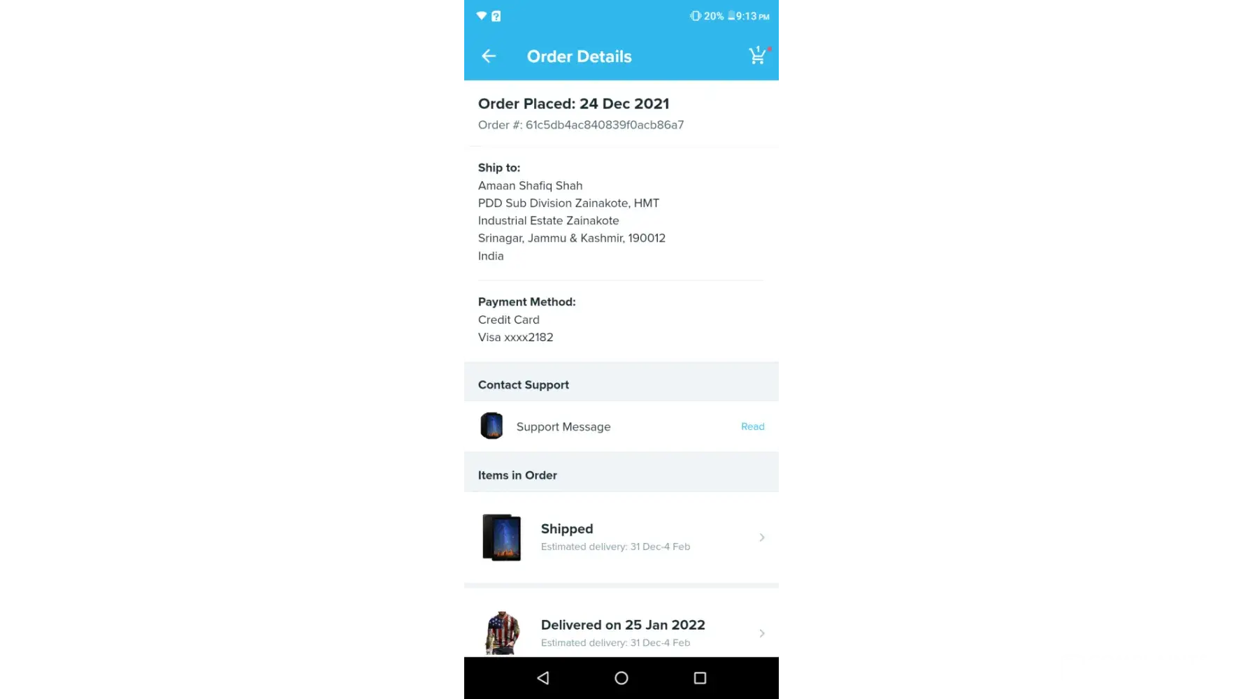 I ordered 2 items (2T-shirts and 1 Tab) on 24th december 2021 with