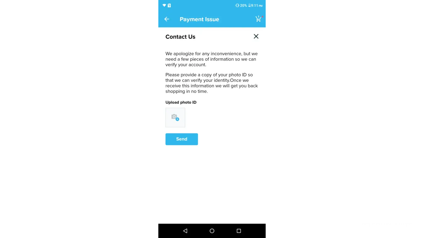 Desired outcome: WHENVER I TRY TO CONTACT CUSTOMER SUPPORT AND THEY ARE ASKING ME TO UPLOAD PHOTO ID CARD
