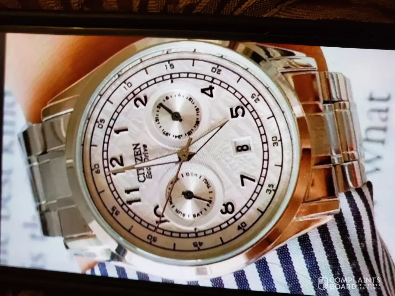 I just wanted to know if it was an actual Eco Drive and if it is powered by the Sun or kinetic energy it has two subdials with the date on the bottom the sellers name is wanglingling123 I don't know the Show's address email address I mean I have a contact in Citizen watch company they are yet to get back to me I was able to send them a photograph of the item a question I'm afraid it might be a fake watch so buyer beware.