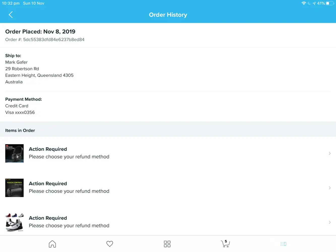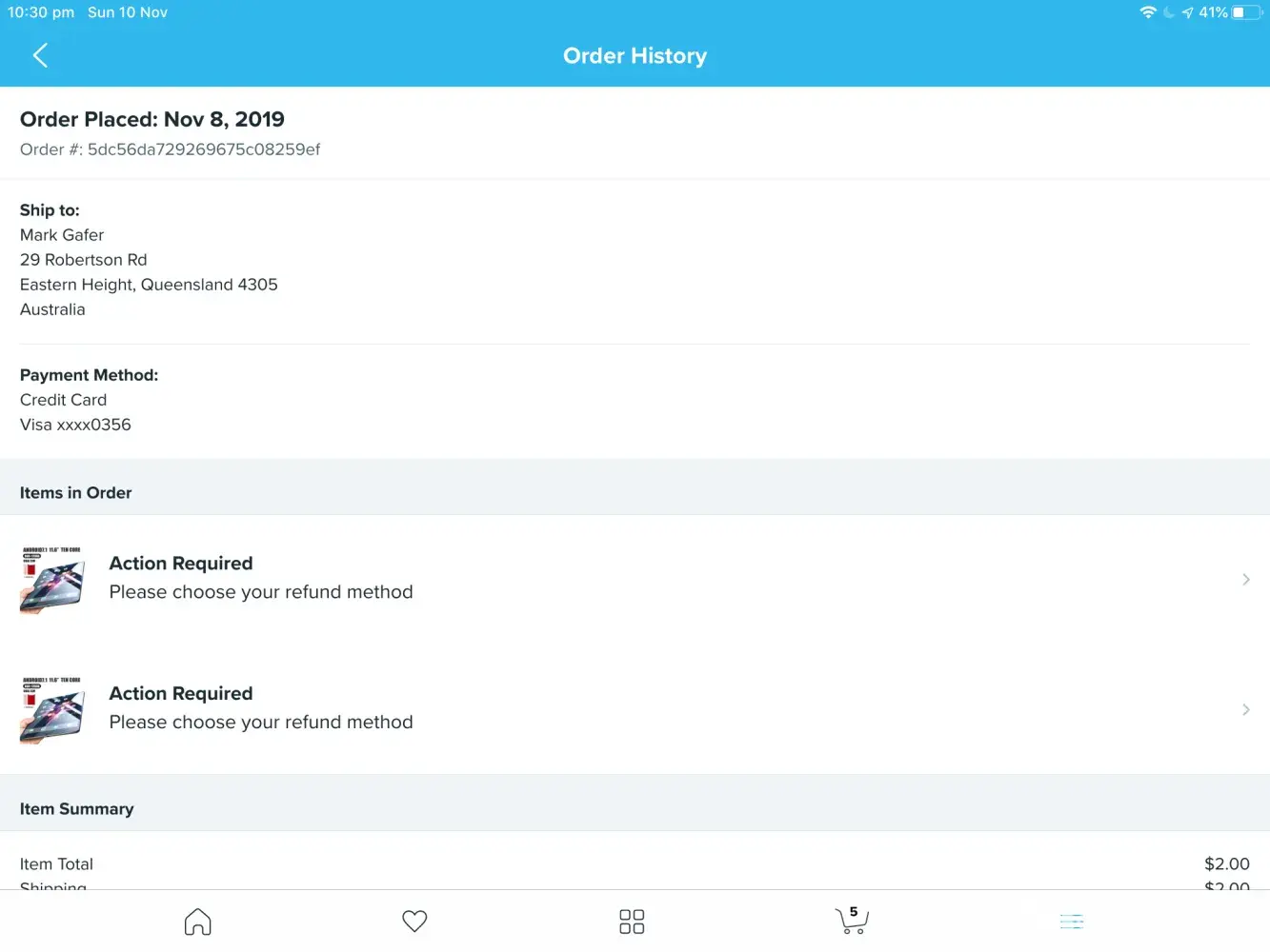 I purchased 5 items. I was charged 5 separate postage charges totalling AUD$22.00. All 5 items were delivered in 1 bag. Please refund the excess Postage that was charged.