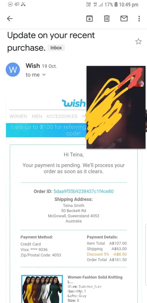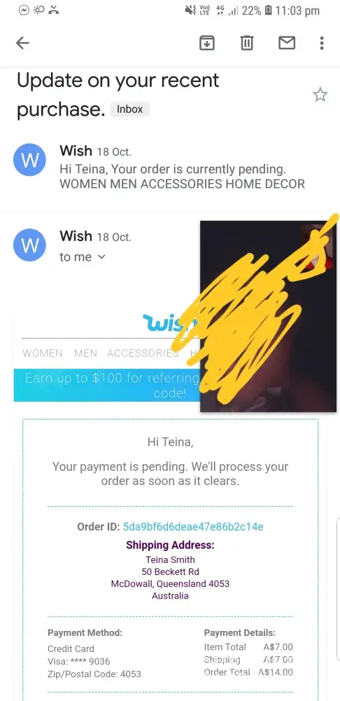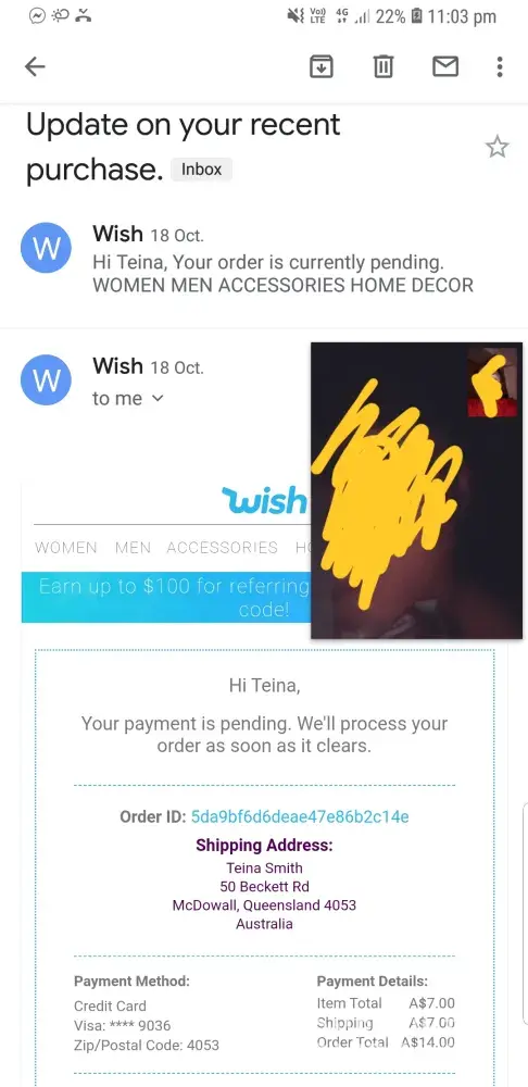 Now the notification screen at Wish says there was an issue processing the payment. When I tap the notification, as advised, I am told that Wish needs a few pieces of information so that they can verify my account and ask for my mail id. When I furnish my mail id it needs a photo id.