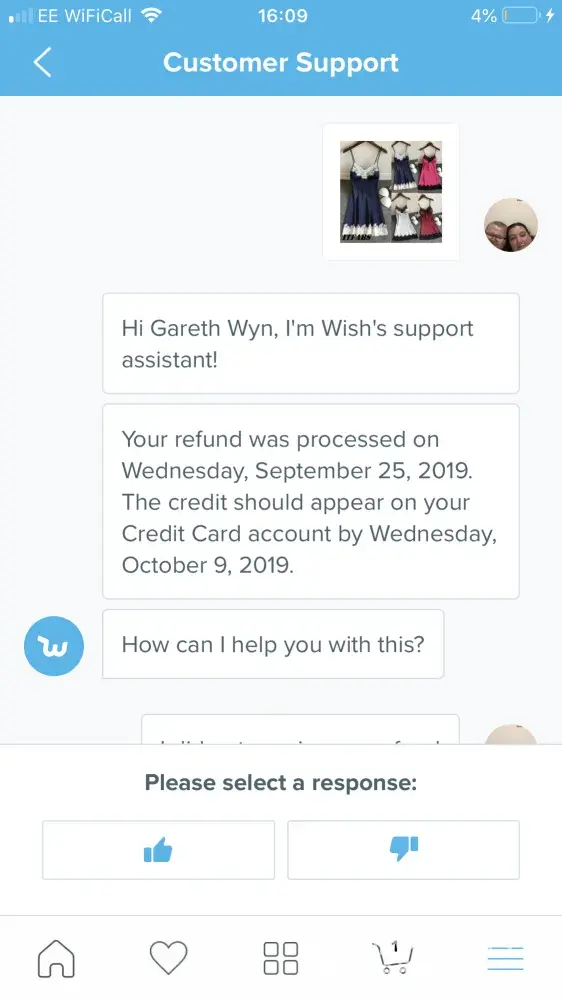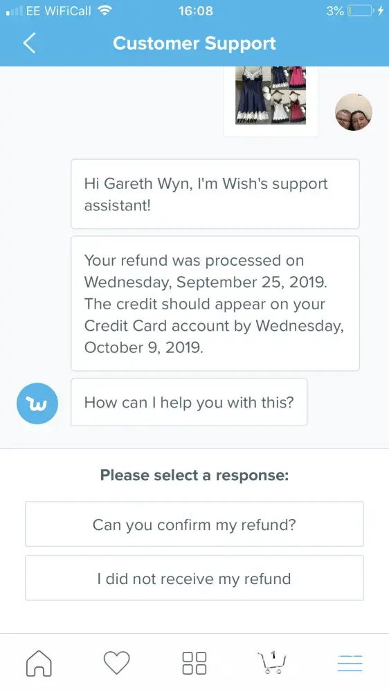 Dear Wish Customer service. I am getting frustrated each time i tried to purchase my items i get a pop up message asking for my picture i d