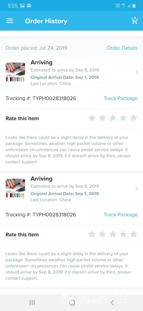 >>> Most items arrive within 1-2 weeks of the estimated date. If you don't receive your item, please contact us anytime before Sep 8, 2019 and we will be happy to resolve your problem.