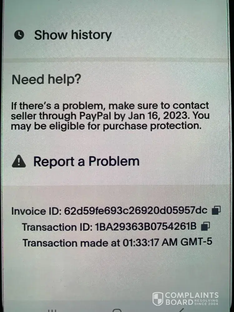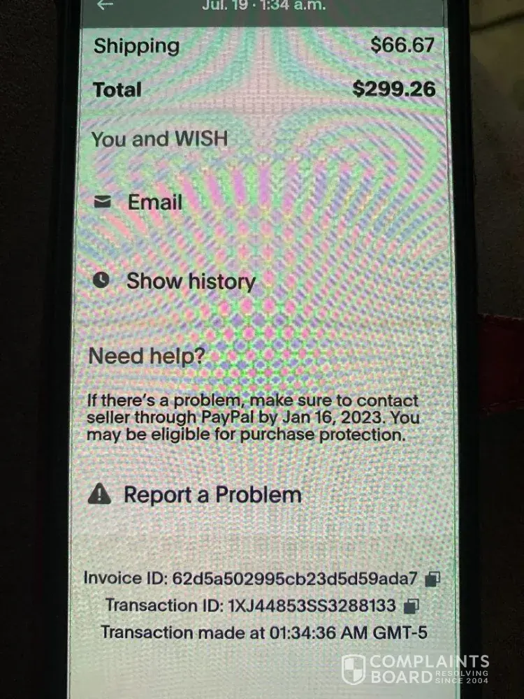 Wish.com issued full refund. Could you kindly remove the complaint? Thank you