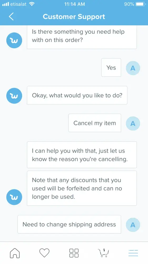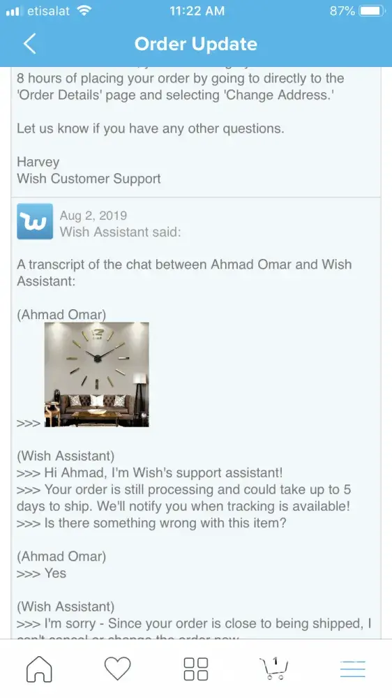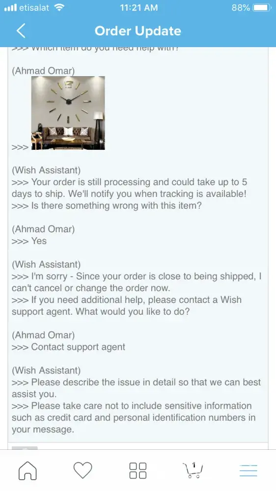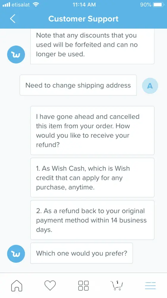 ordered several items from wish however, when checking out My shipping address included typing mistakes and I forgot to mention building number! So I contacted customer support for help regarding some of the items and regarding the rest I couldn't even go through to reach your customer support employees due to stupid autonomous menu !