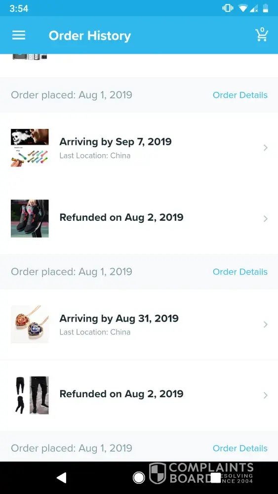 I ordered 4 items from Wish namely 2 gothic steam punk jackets and 2 rifle scopes. I received confirmation that my orders were being processed. I then receive emails 5 days later from confirmation receipt, that the merchant can't fulfill my order.
