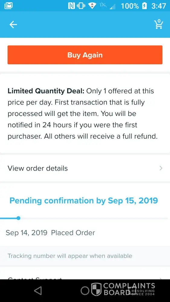 Too many business on Wish using :limited" deals to lure people into buying more expensive items. Every item I purchased was cancelled an d refunded. definately a scam operating and Wish should investigate all "limited" deals. EG I purchased a 10.7 inch pad fpr @200 on limited deal when there was 8 items available but deal was cancelled 2 days later and now waiting for refund. Seems like only honest place to shop is Amazon because eBay allows sellers from China to breach their own policies.