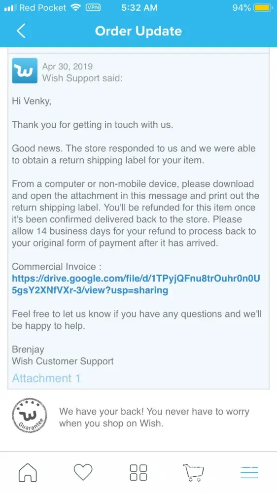 I know Wish is trying to prolong the Refund or not give me my Refund of $55.60 CAD