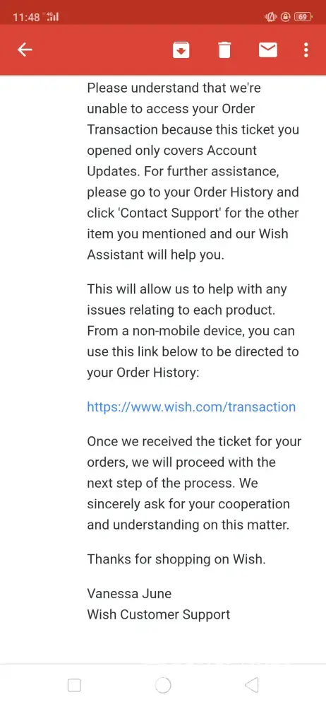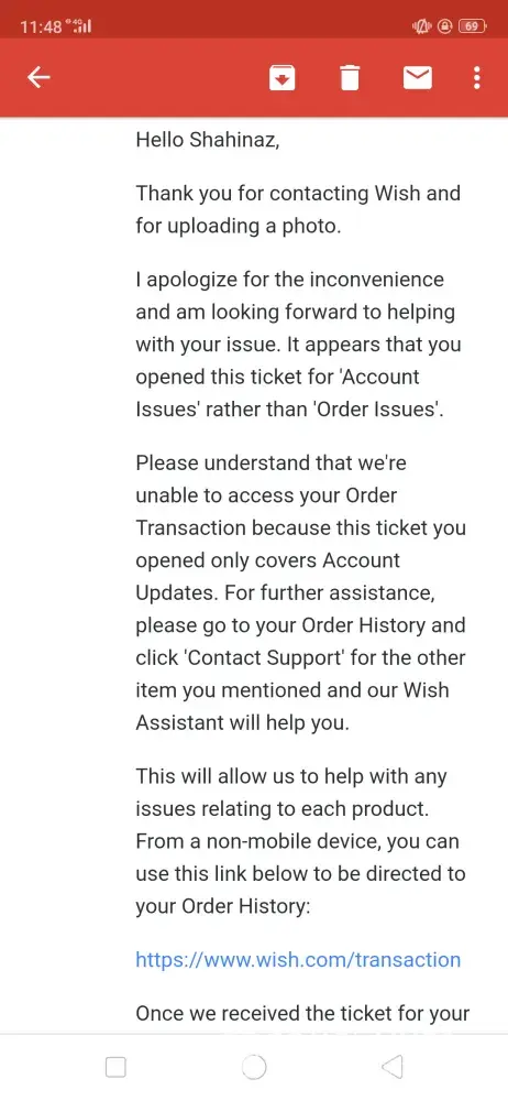 I placed an order on wish.com on 8 July 2018. I haven't received half of the items (12 items) i ordered uptill to date (22 july 2019) I've tried contacting the customer support several times through the application which is totally automated and never replied with a solution I've received a reply that my items are still in transit and i should be patient till it arrives! Now it's over a year and i haven't received any of the missing items yet! I've sent them several emails explaining the case and stating my request that they should send me the items and follow up on their status or if they are lost they should send me other items with the same value or refund the money that i paid for those items i never received! I received dumb replies stating that refund isn't possible after 30 days of delivery! Duhhh i never received them! Please help me find a solution for my issue with this company that apparently intend to steal your money! I've attached screenshots of the email log. Kindly help
