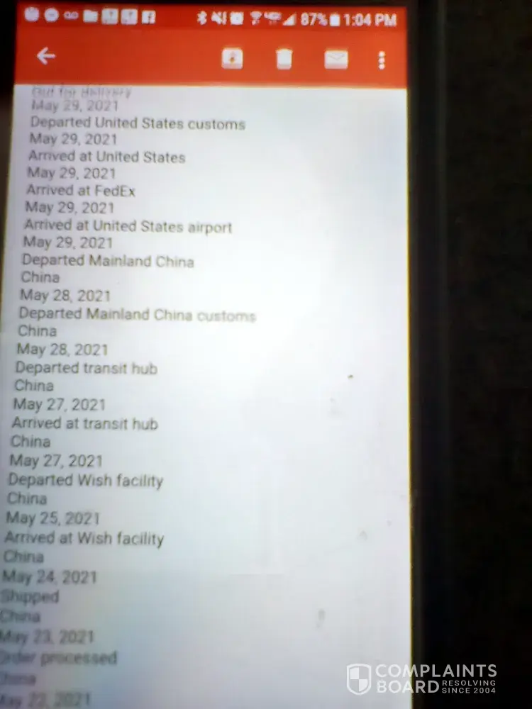 I placed an order with Wish online and never received the order. I have a copy of my credit card statement showing that Wish charged my credit card. I have an email from Wish saying that my order is on the way. I never received. Wish refuse to acknowledge my complaint because they cannot find my order. I also sent a letter to the San Francisco office and there was no reply.