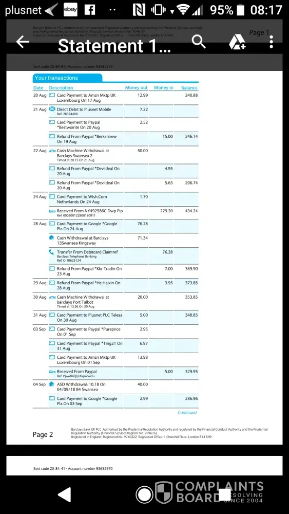 1. Picture of statement that showed recent purchases. (15 Times or more)