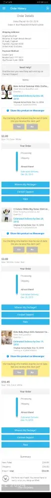 I love shopping on Wish site however the entire history for Dec. 2018 has been wiped out and there are still items I paid for but haven't received as well as 2 refunds I was told would be available as of Dec. 30, 2018. They were not. Most of the time Wish is good about refunds but not this time. I ordered 2 pair of tan leather pants for Christmas gifts but when they arrived they seemed more like raincoat plastic. Gross. A third pair were ordered and arrived having an inseam if about 26 inches...hmmm, only a small child could fit into them.