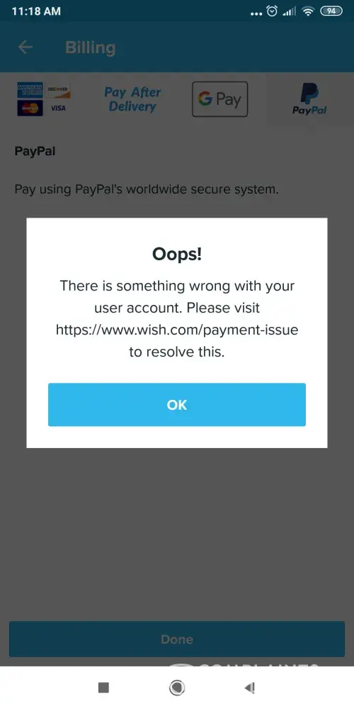 I try to make a payment to order the stuff off wish and it won't let me make a payment it says something is wrong it will not allow me to plZ tel me how to get this fix asap my wish account will not allow me to order and make a payment and idk what the problem is but it's getting on my nereves if you could plz let me know how to fix this it would be great