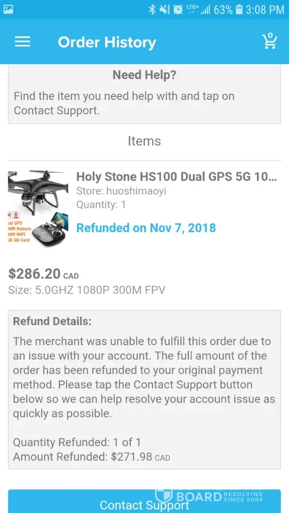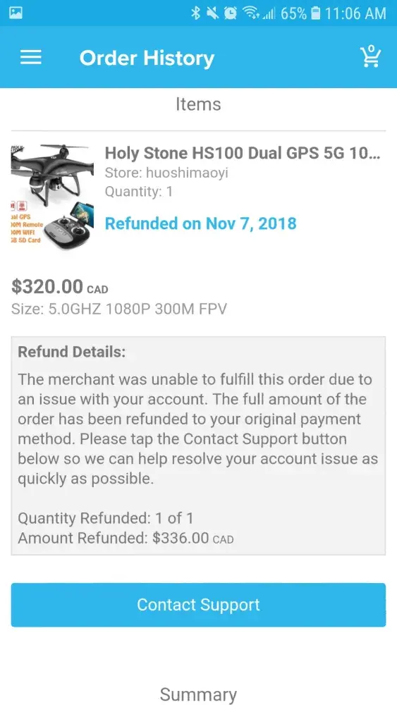 I had purchased 4 small items from wish then I had someone purchased an iPhone 6 on my account which was no one in my household ordered so wish made the decision to give me a refund in wish cash. that same person ordered something else with that refund and then the hacked into my account and changed my email now I dont have access to anything not the refund not the tracking information for the items i did order and now I have only emails back and forth and no action from them at all
